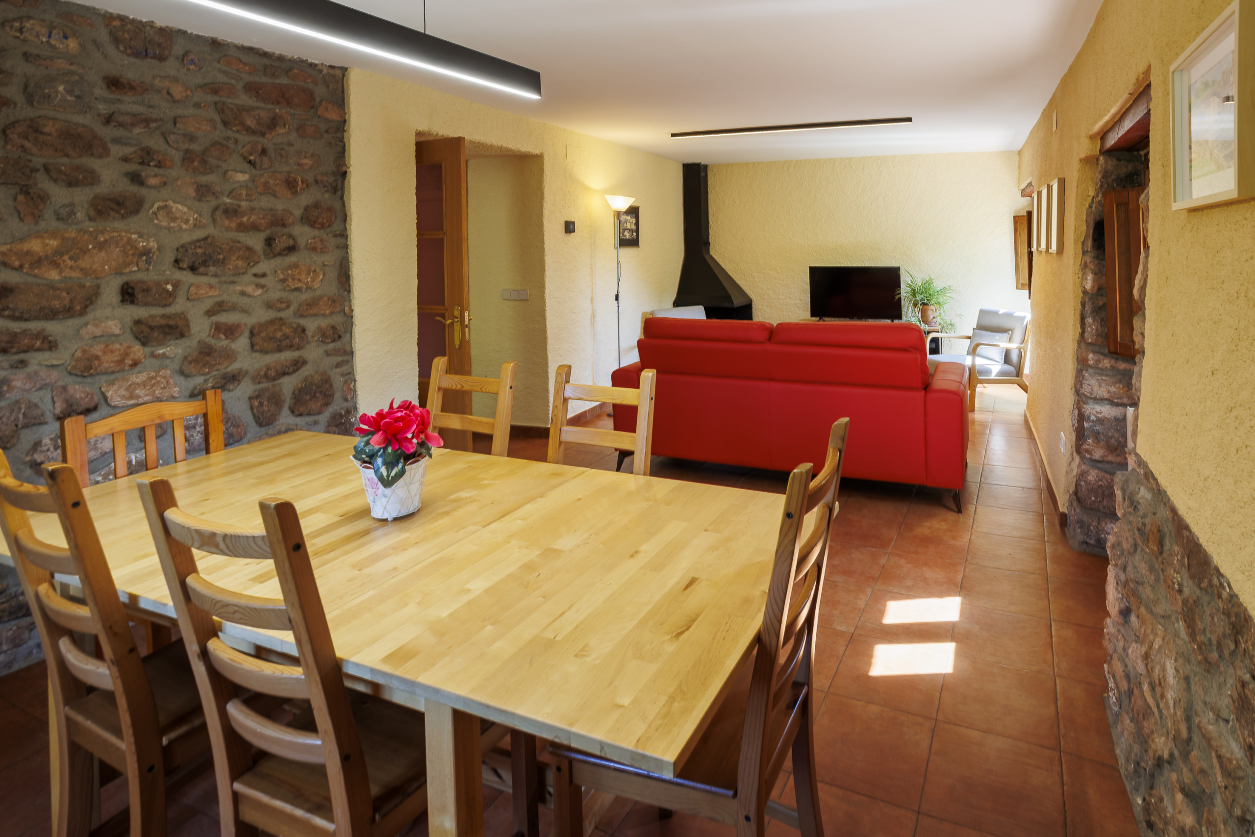 Gaudeix d'una estada en aquesta acollidora i espaiosa casa rural a Camprodón. Amb 6 dormitoris i 4 banys, pot allotjar còmodament fins a 16 persones.La propietat compta amb una cuina totalment equipada amb electrodomèstics com a nevera, congelador, rentadora, cafetera i forn. A més, disposa de dues cuines de vitroceràmica perquè puguis preparar els teus àpats amb comoditat.L'allotjament ofereix una agradable zona d'estar amb llar de foc, així com connexió WiFi perquè puguis mantenir-te connectat durant la teva estada. A més, compta amb 2 televisions perquè puguis gaudir dels teus programes favorits.A l'exterior, podràs relaxar-te al gran jardí, gaudir de les zones d'estar a l'aire lliure i fer ús de la barbacoa. La propietat també compta amb una terrassa perquè puguis gaudir de les vistes.L'allotjament disposa de 7 places d'aparcament a l'aire lliure al mateix edifici, la qual cosa facilita l'estacionament del teu vehicle.S'admeten mascotes, amb un màxim de 2 animals. Està permès fumar a l'exterior de la propietat.